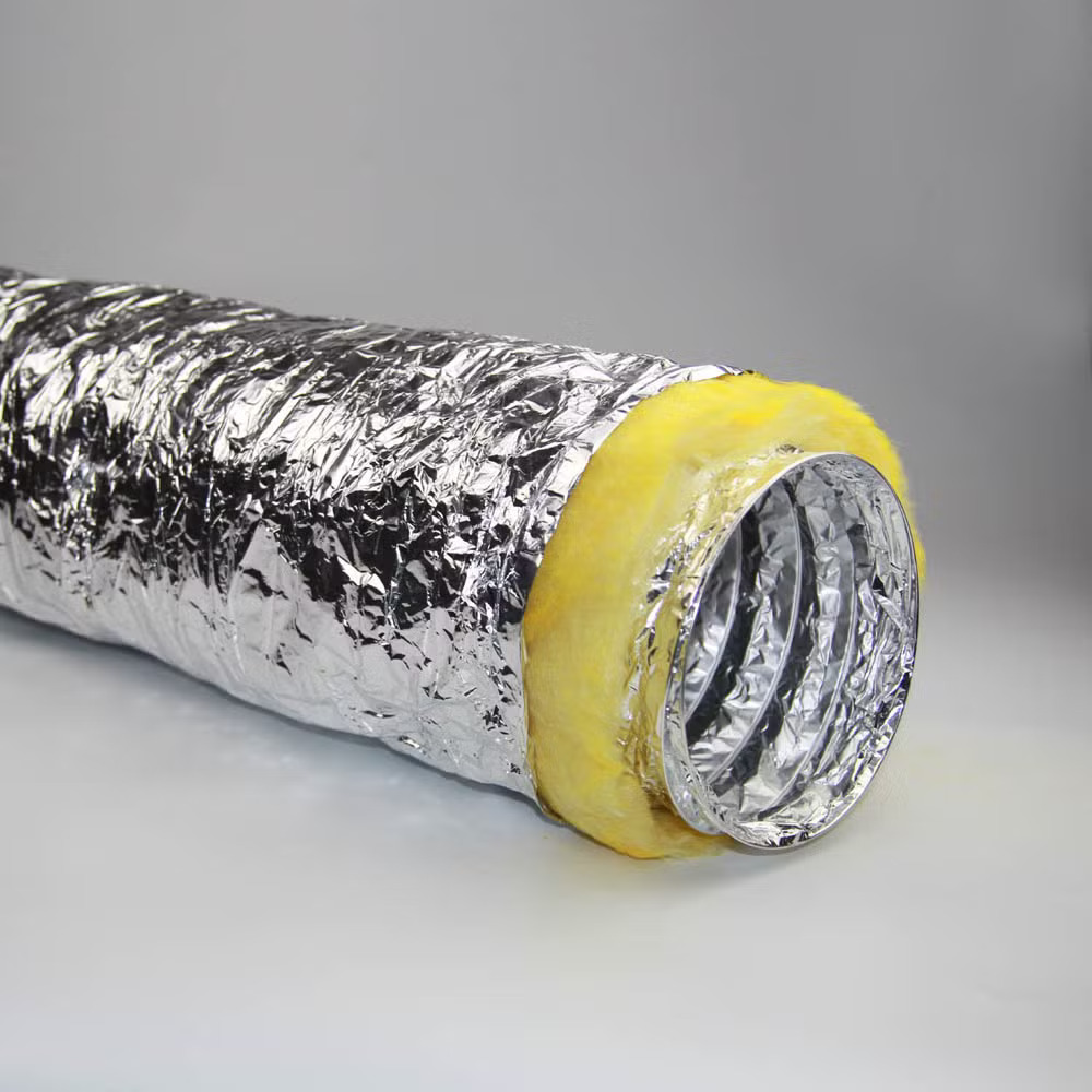 ท่อลมที่มีฟอยล์อะลูมิเนียมเพื่อการระบายอากาศที่มีประสิทธิภาพ. ช่วยให้ท่อลมมีความเย็นสบายและไม่ร้อนเกินไป. ดีไซน์นี้เหมาะสำหรับการใช้งานในพื้นที่ที่มีอากาศที่ต้องการระบาย.